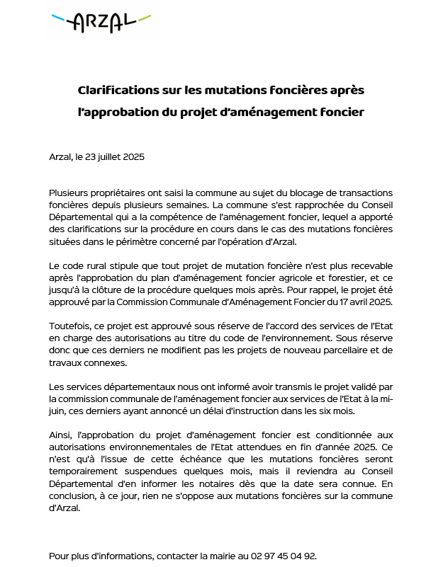 Communiqué de la municipalité :