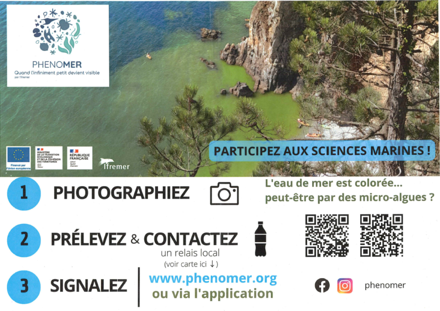 Depuis le rivage ou sur l’eau, il est ainsi possible de signaler tout événement inhabituel soit sur le site internet : https://www.phenomer.org/, soit via l’application mobile phenomer disponible sur IOS et Android.