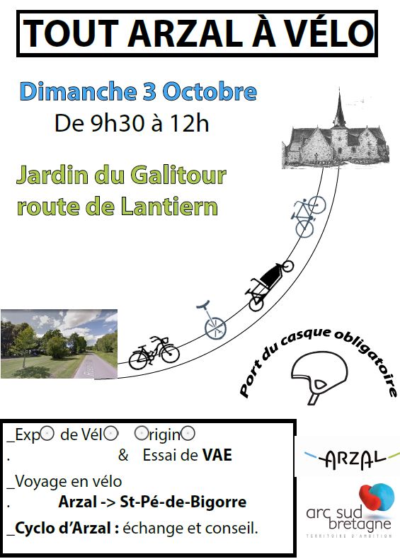 Vous pourrez emprunter un circuit entre Le Bourg et Lantiern, tester des vélos originaux et des vélos à assistance électrique, vous informer et échanger avec l’Association « Les Cyclos d’Arzal », sur la sécurité et les bons comportements à adopter sur route.