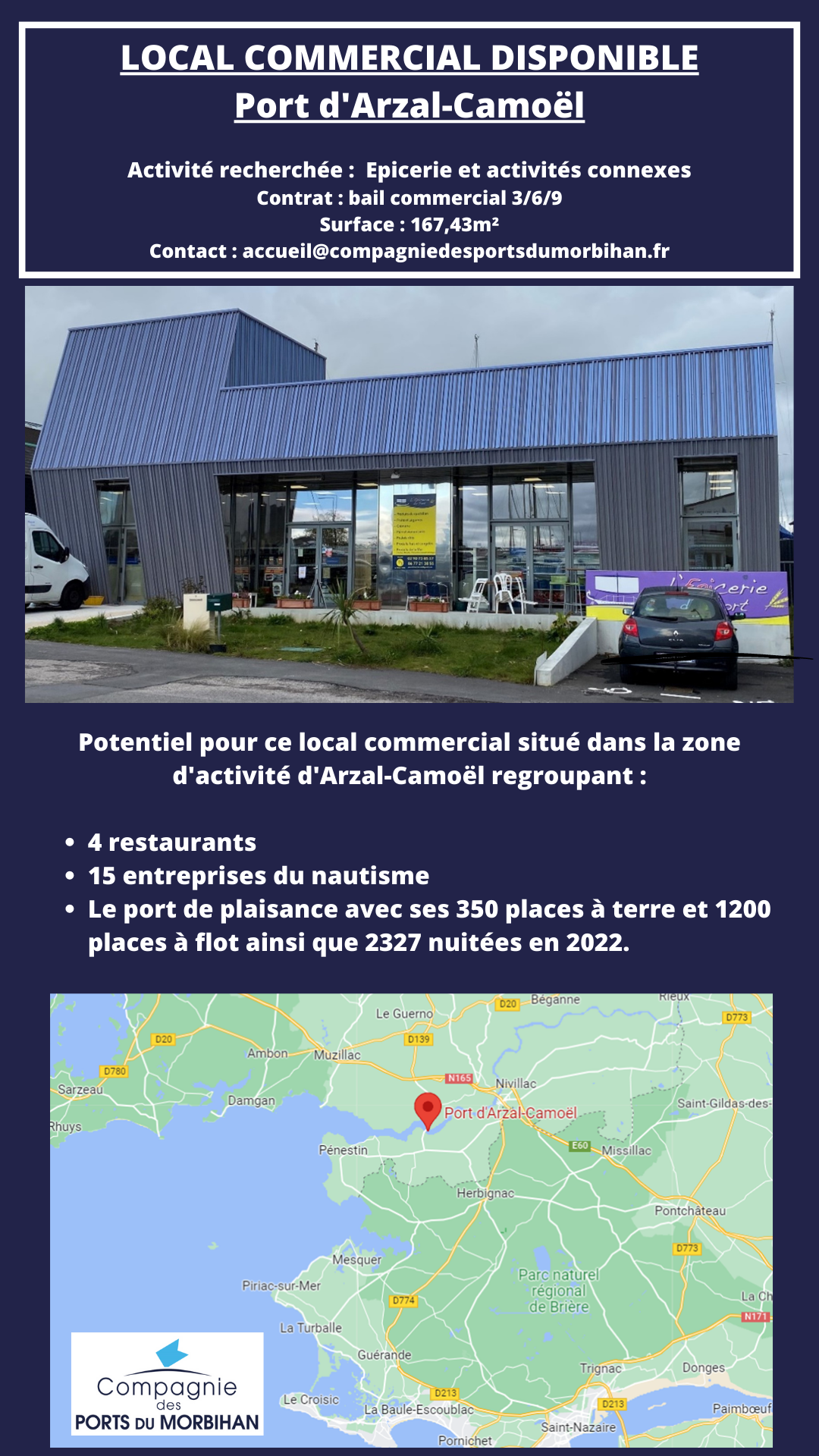 La Compagnie des ports du Morbihan recherche un commerçant pour une épicerie et des activités connexes dans son local disponible sur la zone d’activités du Barrage.