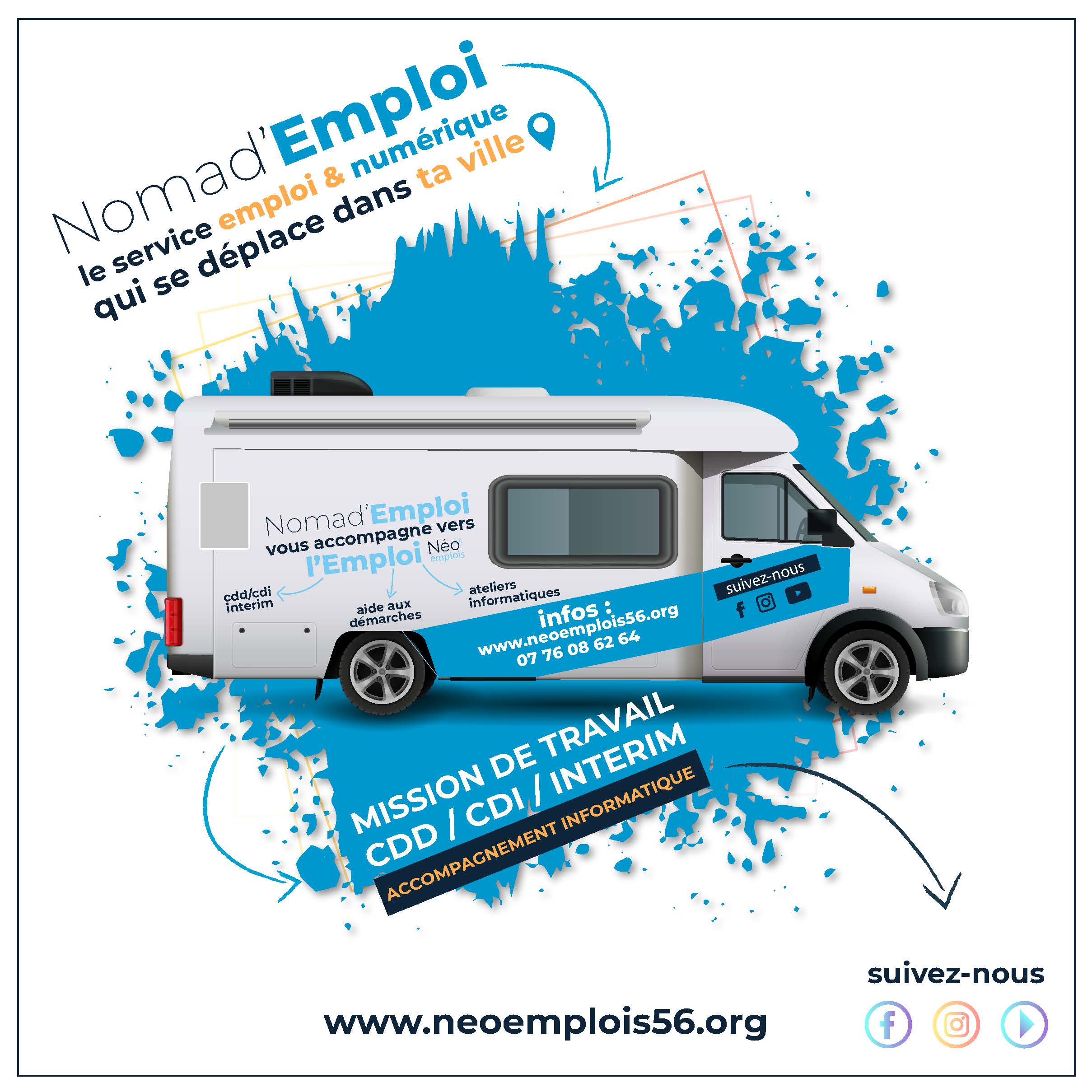 Nomad’Emploi est le service emploi et numérique qui se déplace dans votre ville ! C’est via un camping-car que notre conseillère emploi va parcourir les routes du Morbihan et venir à Arzal pour rencontrer les habitants. Il sera proposé des ateliers numériques en lien avec l’emploi, mais aussi des missions de travail en collaboration avec les entreprises du territoire.