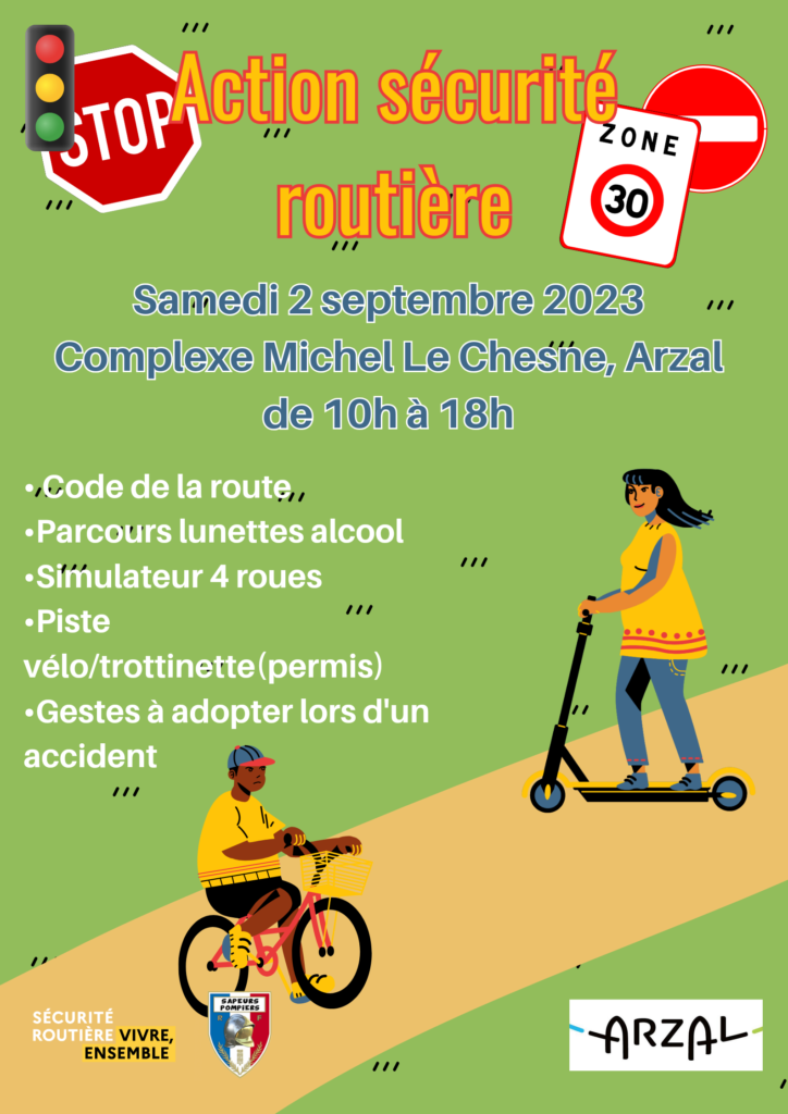 Journée d’action sécurité routière le samedi 2 septembre de 10 h à 18 h au complexe Michel Le Chesne.