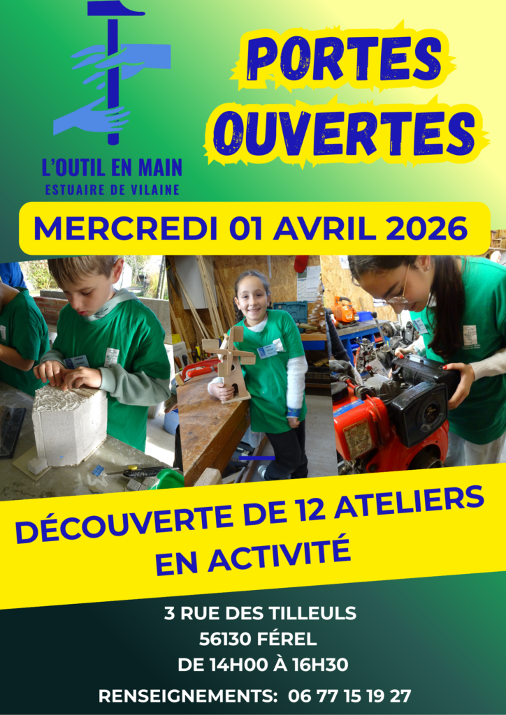 L’Outil en main, 3, rue des Tilleuls à Férel, propose une porte ouverte le mercredi 1er avril de 14 h à 16 h 30.